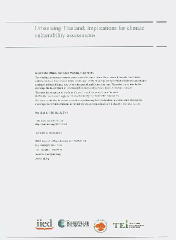 Urbanising Thailand: implications for climate vulnerability assessments/ Asian Cities Climate Resilience