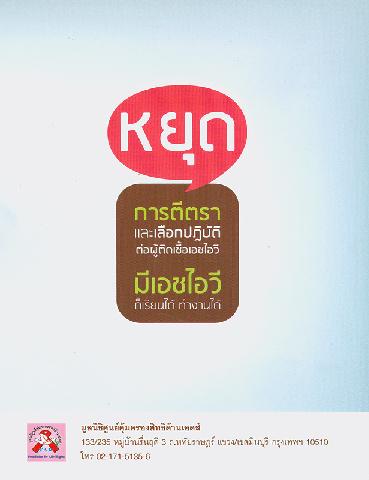 รายงานสถานการณ์สิทธิมนุษยชนที่เกี่ยวข้องกับเอชไอวี/เอดส์ในประเทศไทย ประจำปี 2555 / มูลนิธิศูนย์คุ้มครองสิทธิด้านเอดส์