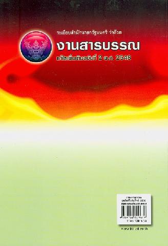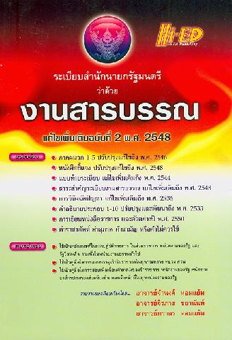 ระเบียบสำนักนายกรัฐมนตรี ว่าด้วยงานสารบรรณ แก้ไขเพิ่มเติม ฉบับที่ 2 พ.ศ.2548 / จำนงค์ หอมแย้ม, จิรภาส ชยานันท์ และภราดร หอมแย้ม
